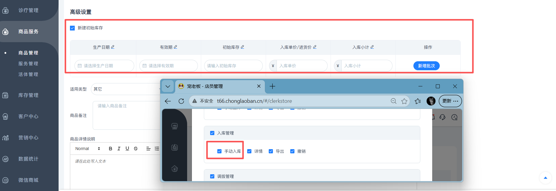 4. 新增初始库存权限优化,仅支持有手动入库权限的职位支持新增初始库存