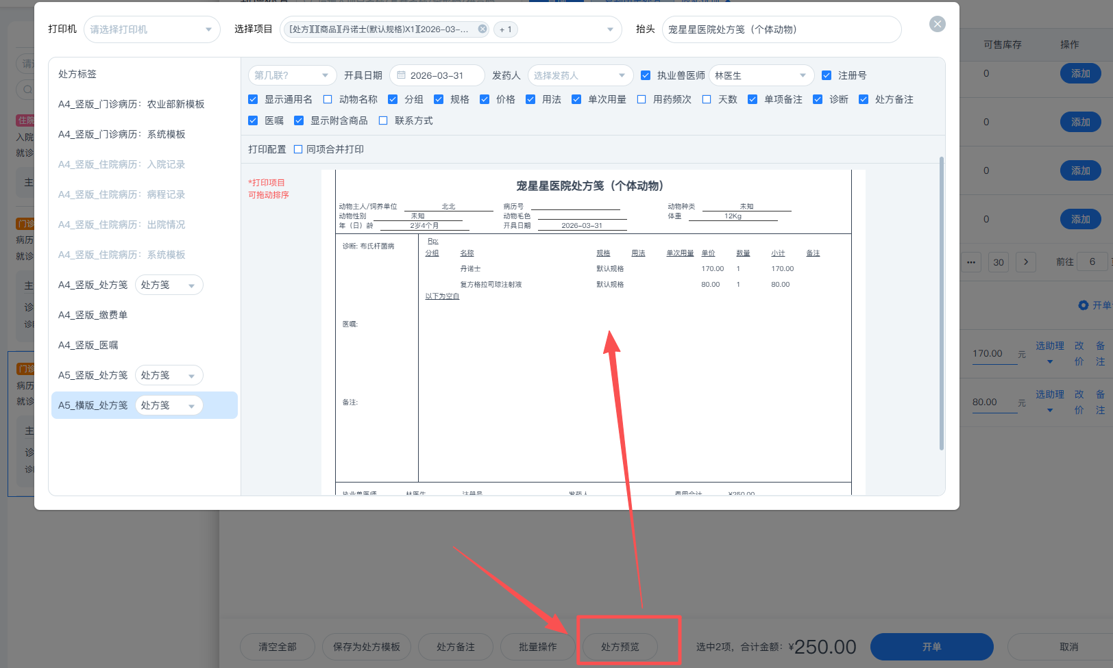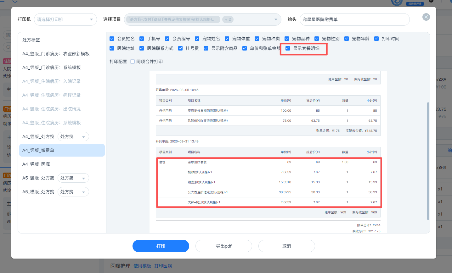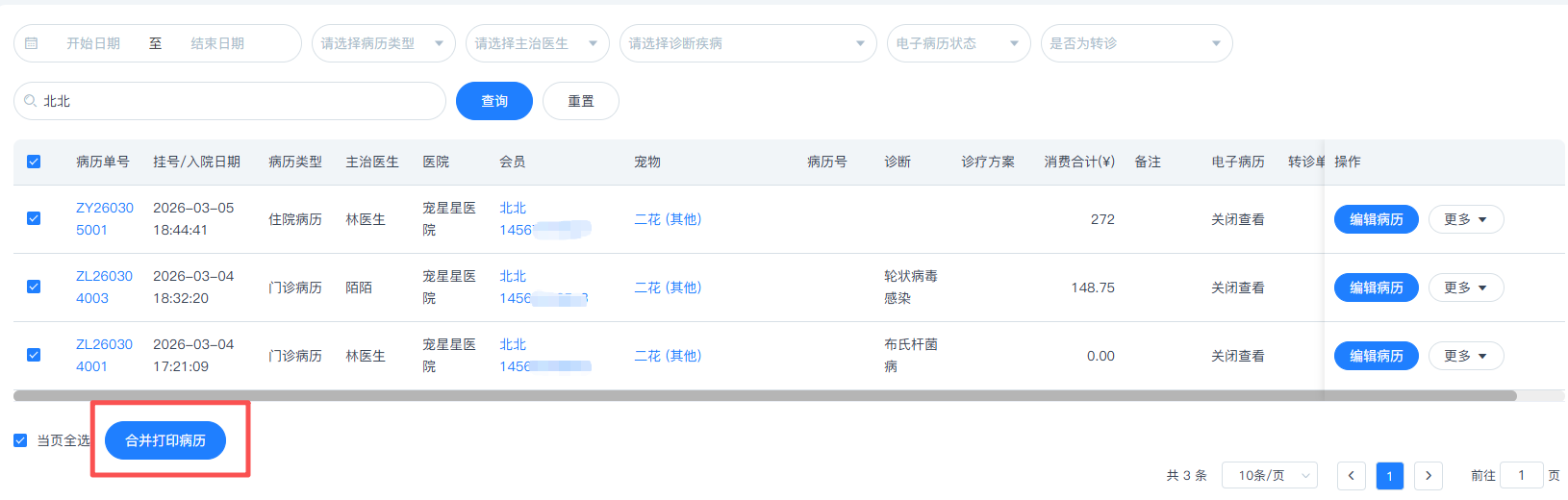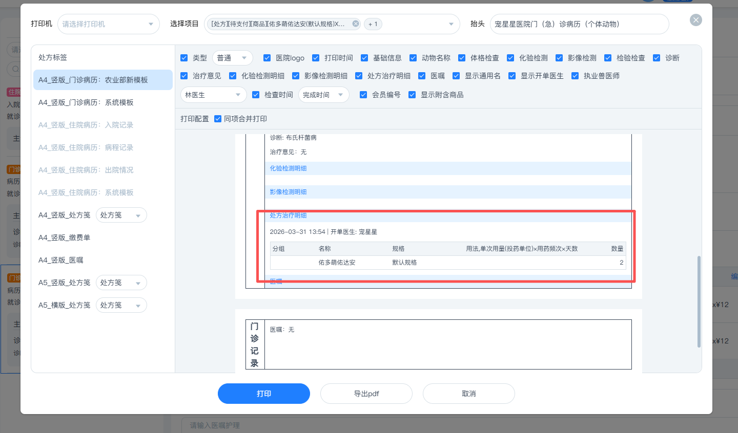 7. 病历打印新增支持合并打印相同宠物的门诊、住院病历