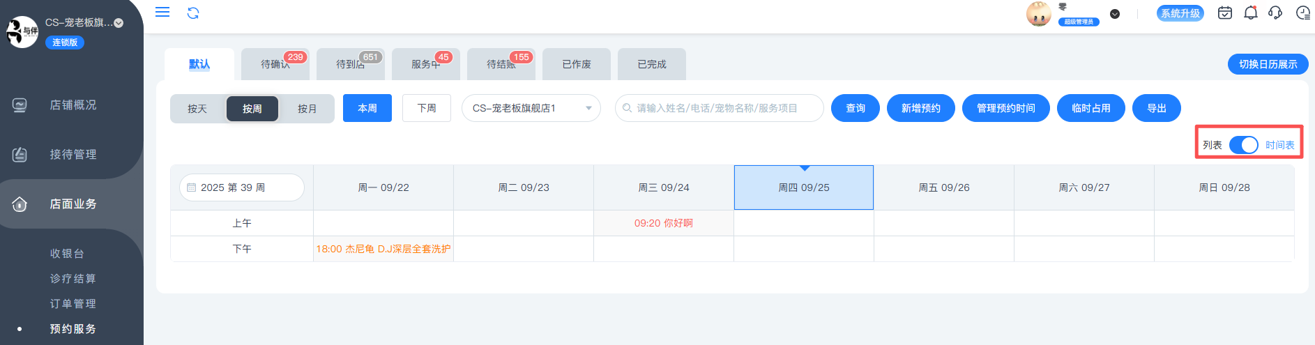 【更新内容】 一. 预约服务时间表优化 预约服务新增时间表查看模式,支持按日/周/月查看预约订单