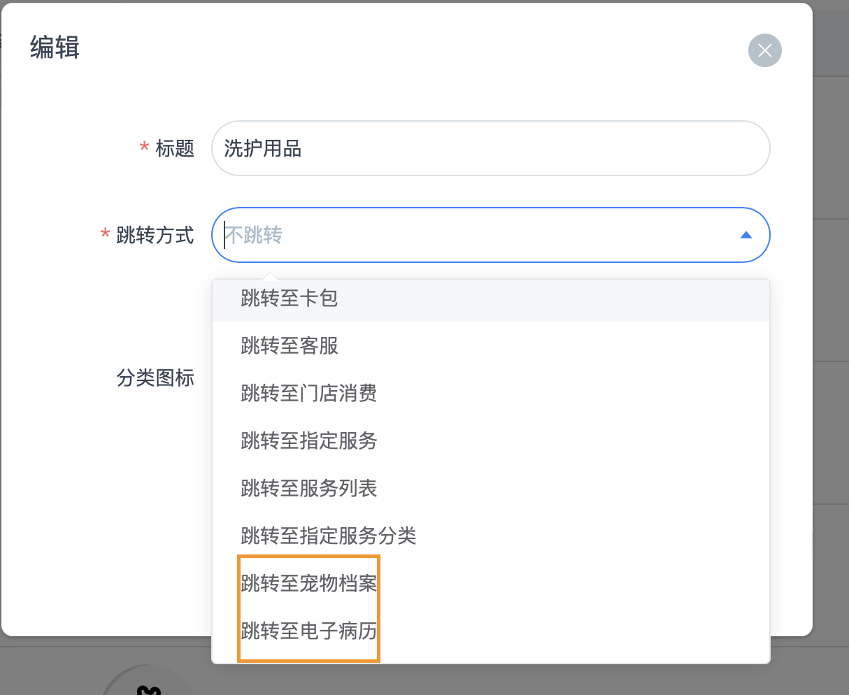 2.2 店铺装修-跳转方式-新增跳转至电子病历、宠物档案