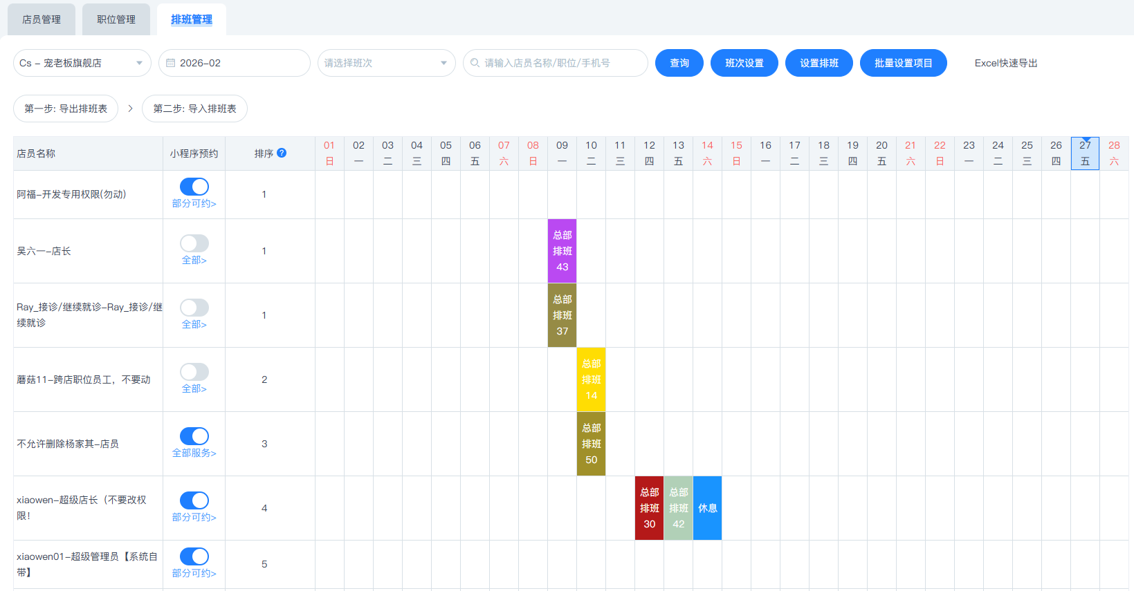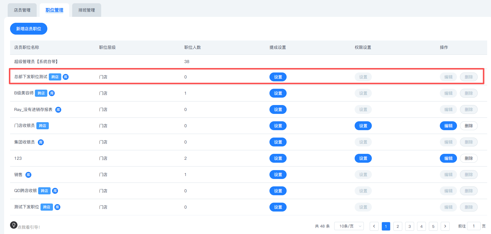 总部支持给分店添加店员,设置权限及提成,并支持给连锁体系下所有店员进行排班设置