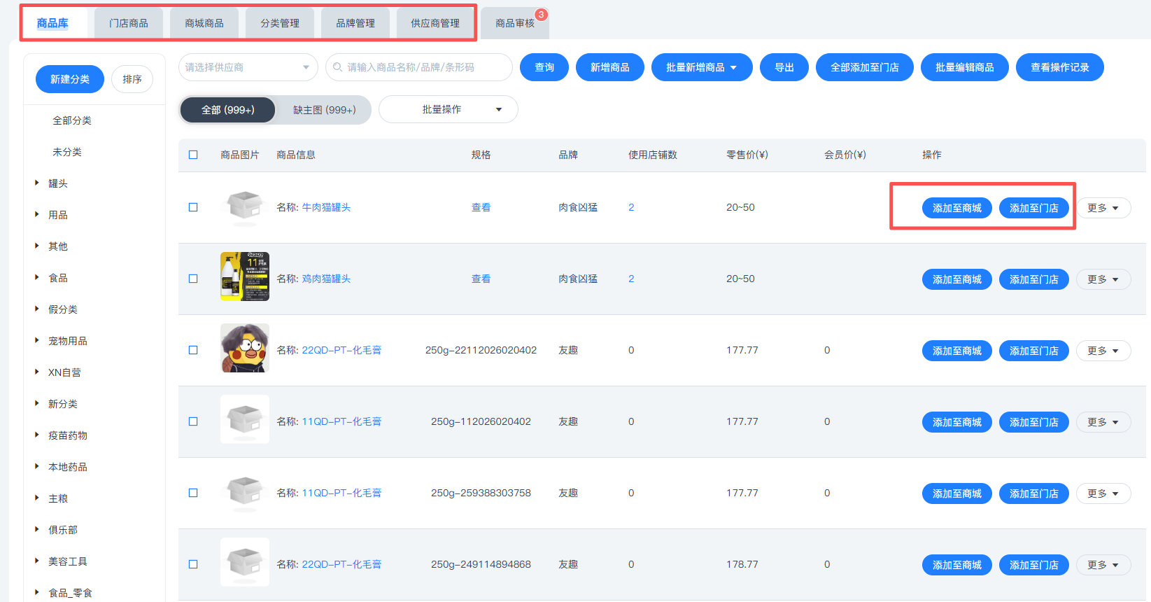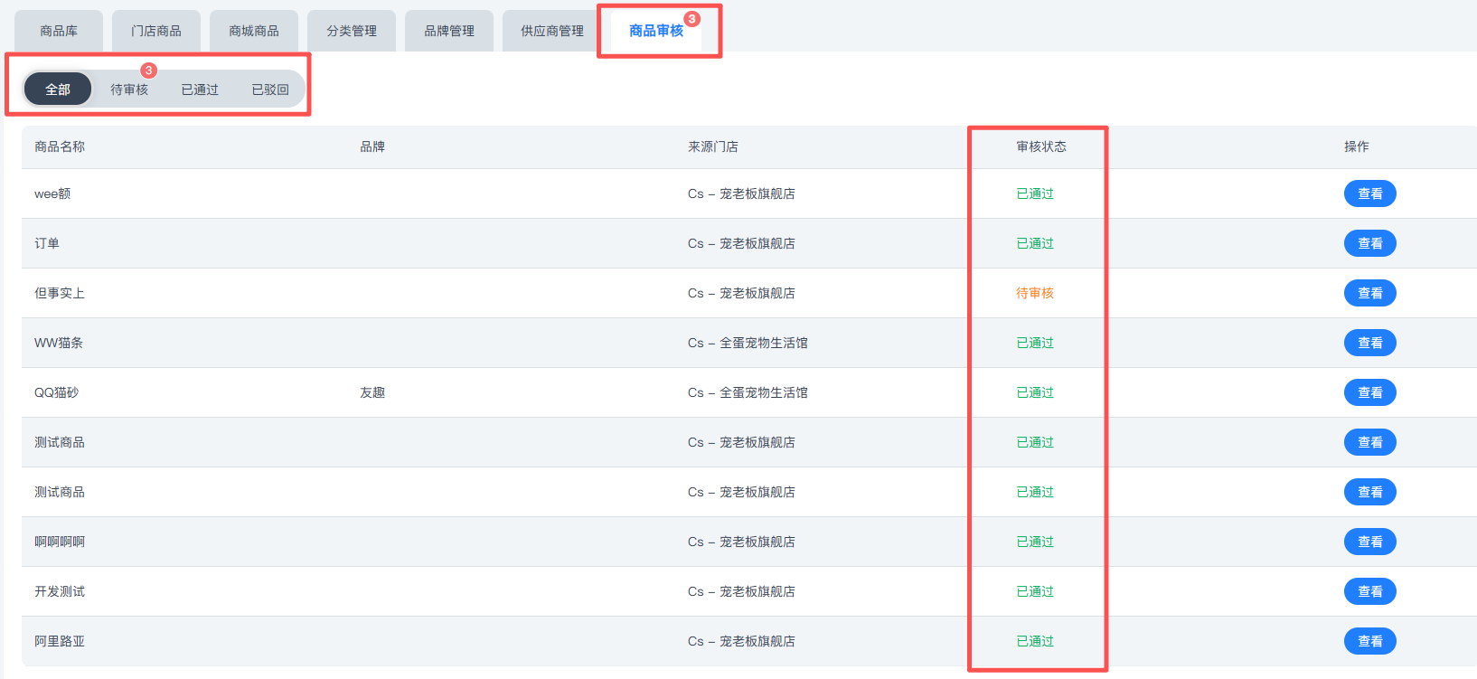 分店自建商品支持总部审核,总部审核通过后方可添加至分店,并同步至总部的【商品库】,总部与分店均可点击【商品审核】查看审核状态,若被驳回,分店可重新发起审核