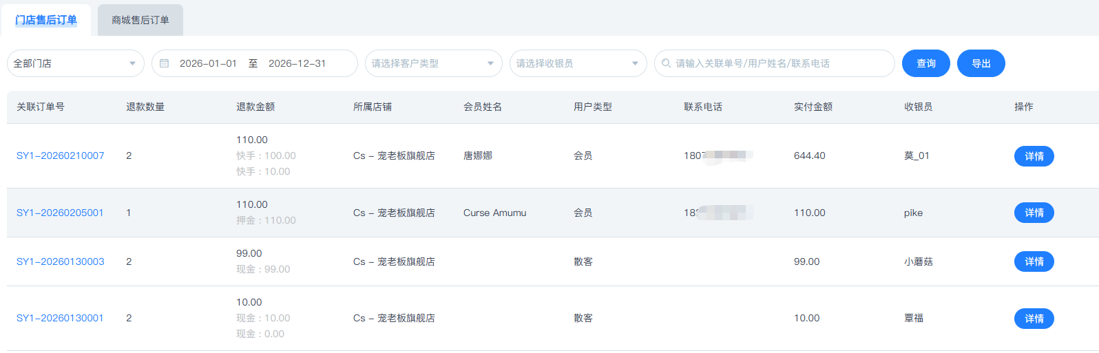 新增【售后订单】功能,整合了所有门店及微信小程序售后订单